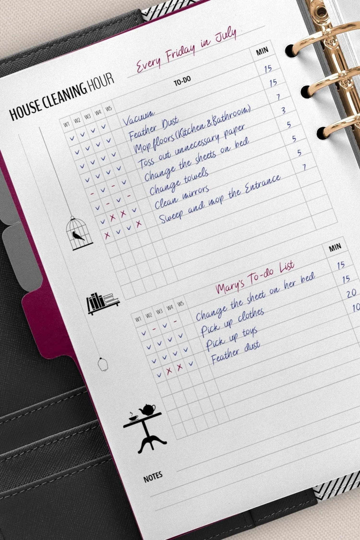 These printables with high-quality beautiful graphics are the part of House Cleaning (Checklist) Planner for Flylady's Cleaning System followers, perfect for Letter, A4, A5 planners or binders with rings.