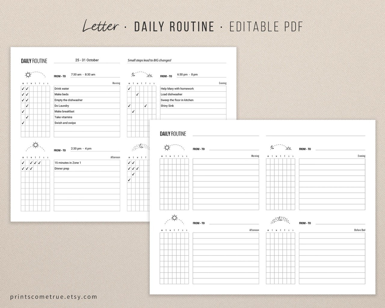 Daily Routine (Horizontal layout, Editable PDF)