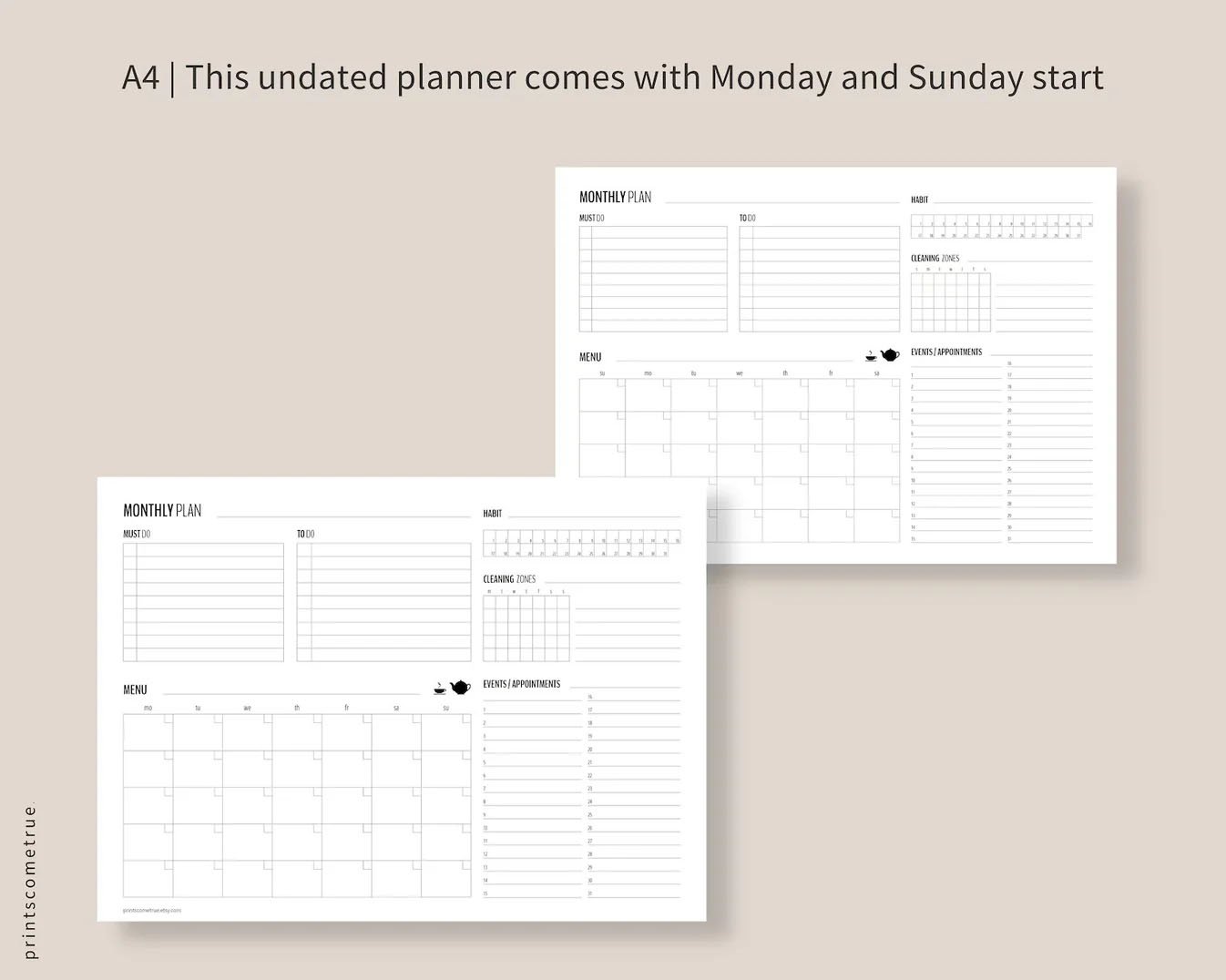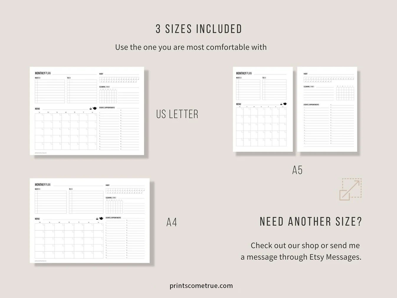 Monthly Planner | Letter, A4, A5