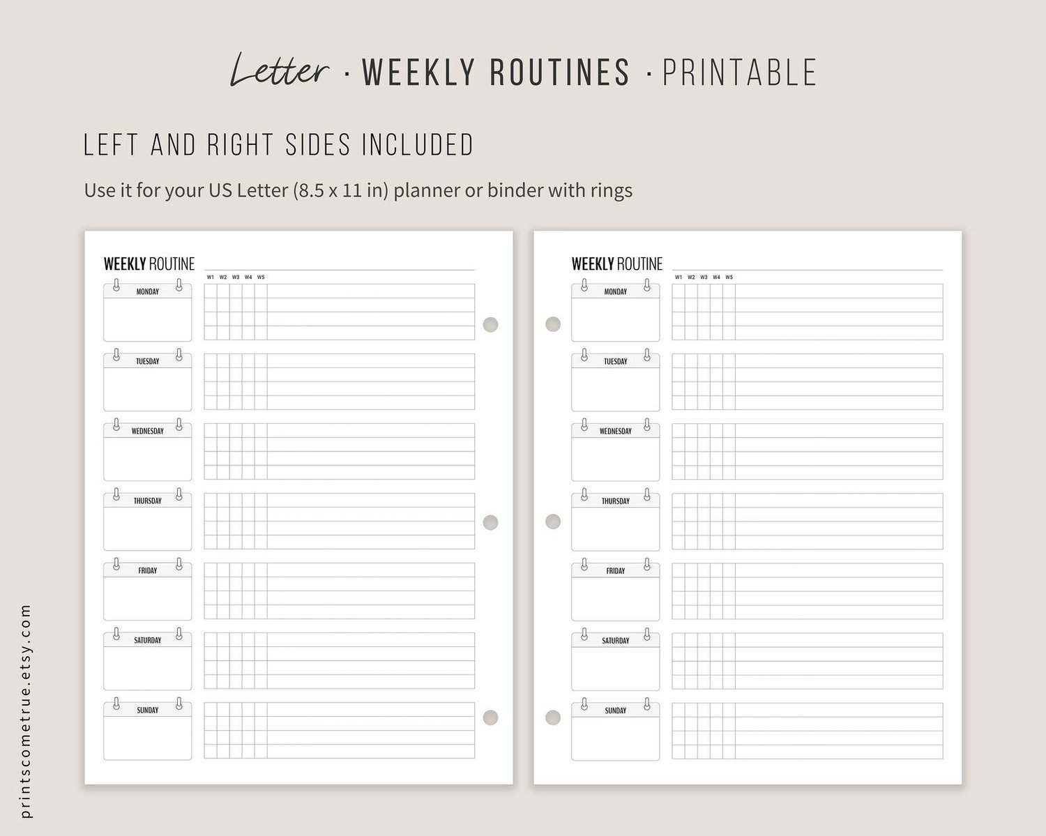 - with left and right margins for your planner or binder with rings.