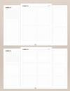 - Two pages with a big space for home or cleaning zone plan with two task columns and monthly checklist.