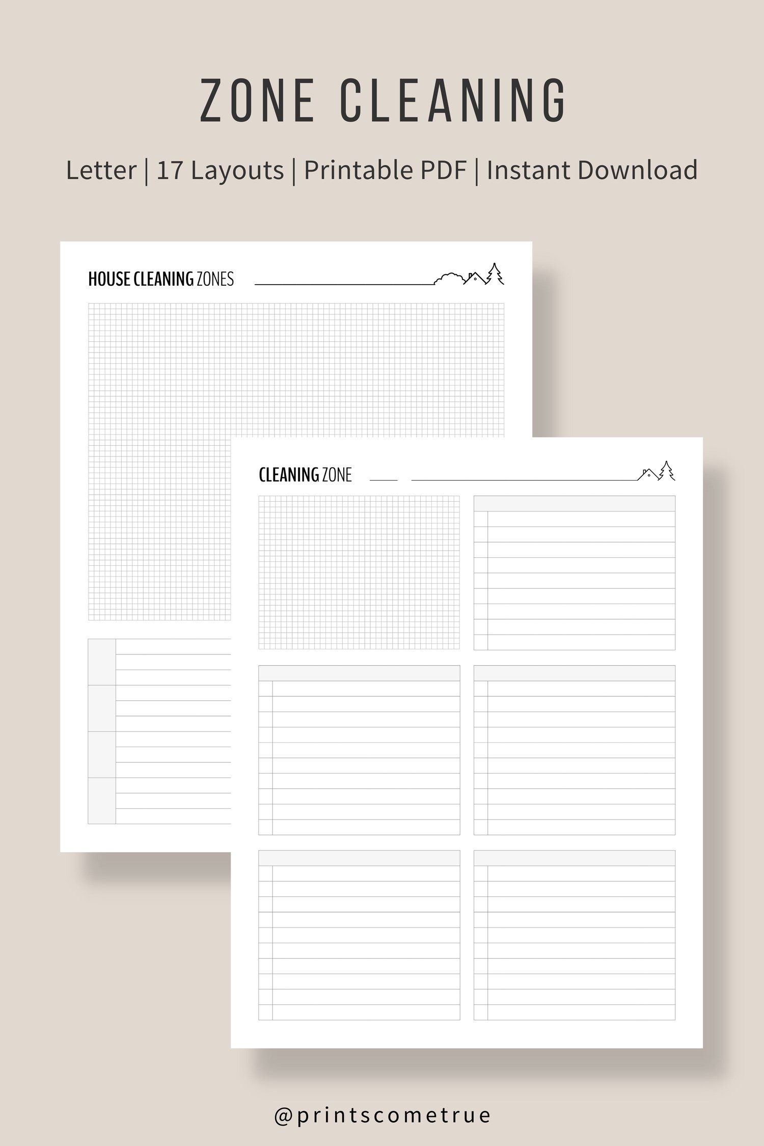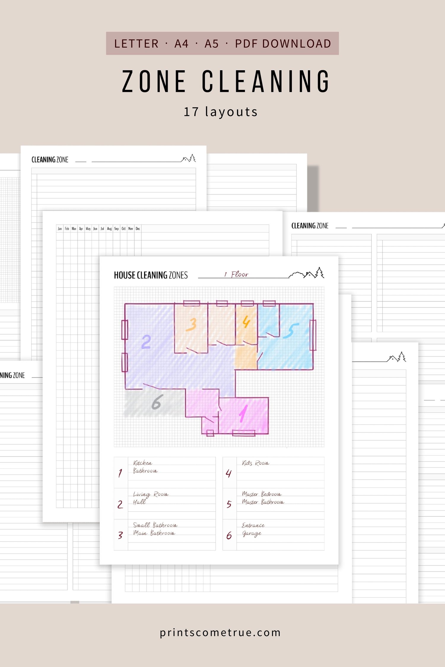 Zone Cleaning Checklist | Letter, A4, A5